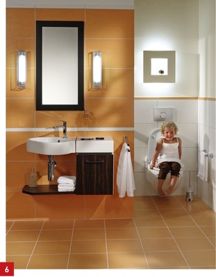 Orange war für Goethe die edelste Farbe. Heutzutage ist die Farbe Orange etwas zwiegespalten. Auf der einen Seite steht die Farbe Orange für Sonne, für Reichtum und Freude, andererseits hat und hatte Orange lange den Beigeschmack von billig. Wie in Bild 6 dargestellt, vermitteln die Fliesen in Orange einen sehr warmen positiven Eindruck.