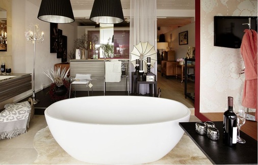 6. Individuell: Die Technik erlaubt frei stehende Wände für Dusche und Waschtisch und eine Badewanne mitten im Raum.