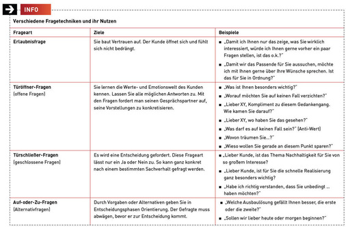 Mit einem klaren Ziel vor Augen wird auch Ihre Sprache und Kommunikation zielführend, klar und verbindlich. Hierzu gehört die geeignete Fragetechnik. Weitere Ausführungen hierzu finden Sie auch im Infokasten Fragetechniken.