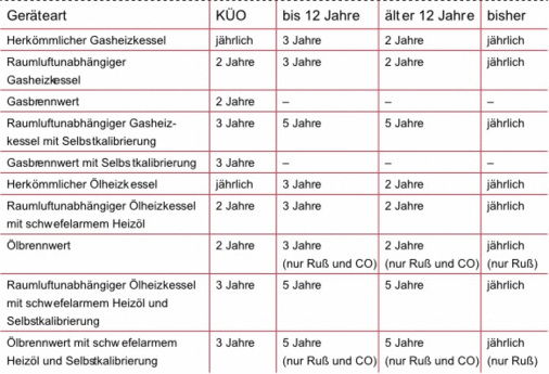 - Eine deutliche Kostenentlastung ergibt sich aus der novellierten 1. BImSchV für die Betreiber von Öl- und Gasheizungen: Die bisherige jährliche Überwachung wird auf zwei- bzw. dreijährlich umgestellt.