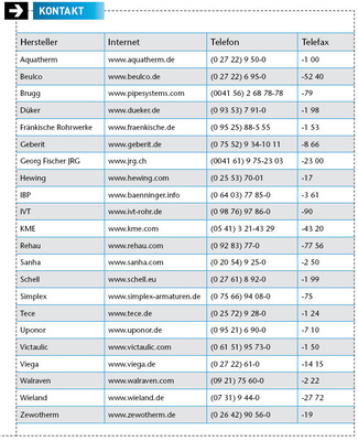 Neu ist auch ein Zwei-Kammer-Rohr, das Warmwasser und Zirkulation gleichermaßen führt. Das physikalisch vernetzte Polyethylenrohr (PE-Xc) ist druckbeständig bis acht bar, erfüllt hygienische Anforderungen und ist mit werkseitiger symmetrischer oder asymmetrischer Dämmung lieferbar. Glatte Oberflächen begünstigen geringe Rohrreibungsverluste. Flexibilität, Druckbeständigkeit und eine Chemikalienbeständigkeit nach DIN 8075, Beiblatt 1 prädestinieren das Mehrkammerrohr auch für einen Einsatz in den unterschiedlichsten Sonderanwendungen.