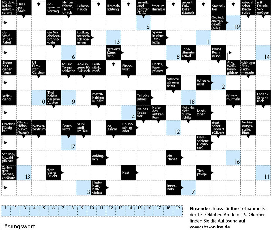 Schicken Sie das Lösungswort mit Ihrer Adresse an kreuzwort@sbz-online.de. Unter den richtigen Einsendungen verlosen wir drei SBZ-Zangengott-Mützen. Die Gewinner werden auf www.sbz-online.de bekannt gegeben!