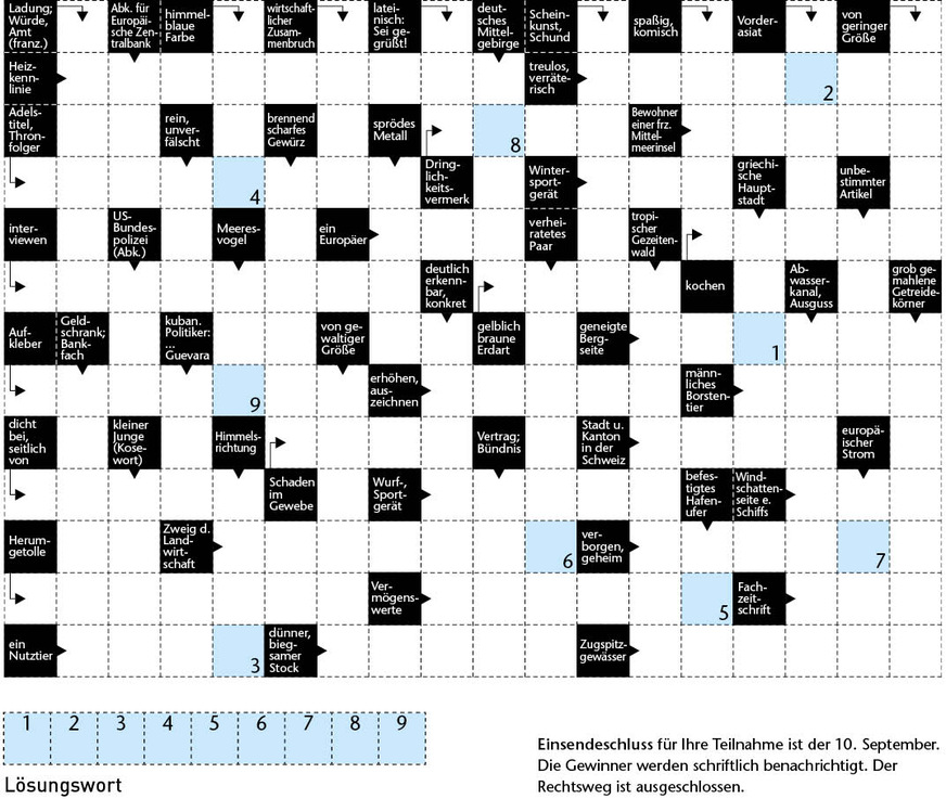Schicken Sie das Lösungswort mit Ihrer Adresse an kreuzwort@sbz-online.de. Unter den richtigen Einsendungen verlosen wir drei SBZ-Zangengott-Mützen. Aktuelle Farbe: Schwarz!