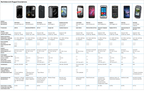 Anbieter Rugged-Smartphones: www.agmmobile.com , www.blackview.hk , www.catphones.com , www.doogee.cc , www.ecom-ex.com , www.handheldgermany.com , www.isafe-mobile.com , www.kyoceramobile.com , www.motorola.de , www.ruggear.com , www.samsung.de , www.simvalley-mobile.de , www.sonymobile.com/de , www.toughbook.eu