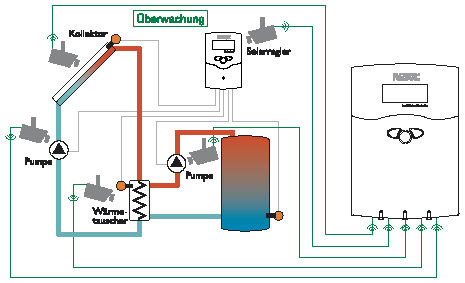 Eine Abweichung von mehr als 20% zwischen Soll- und Ist-Wert wird als technische Störung definiert. Diese Meldung wird am Kontrollgerät angezeigt, kann aber auch an eine Signaleinrichtung (Lampe, Sirene) bzw. an die Gebäudeleittechnik weitergeleitet werden. Zur Unterstützung der Fehlersuche werden sowohl die Messwerte der Sensoren als auch verschiedene Tagesbilanzen für etwa zwei Monate aufgezeichnet. Außerdem werden bis zu zwei gemessene Wärmemengen aufsummiert, so dass der „Input/Output-Controller“ zwei Wärmemengenzähler ersetzen kann.