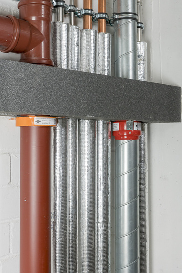 Mit den SANHA-Systemen NiroSan®, NiroSan® Eco, NiroSan® F, NiroSan® SF, NiroTherm®, dem C-Stahlsystem SANHA®-Therm (auch mit DZ-Rohren), Kupferrohren nach EN 1057 und dem schalldämmenden Abfluss-System MASTER 3 ist genau das möglich. Für den Brandschutz stehen zugelassene Brandschutzrohrschalen sowie die Brandschutzmanschette Doyma Curaflam ECOPro (für die Abwasserrohre) zur Verfügung. Damit lassen sich SANHA-Rohrleitungssysteme normkonform, unkompliziert und sicher auch in engen Leitungsschächten installieren.