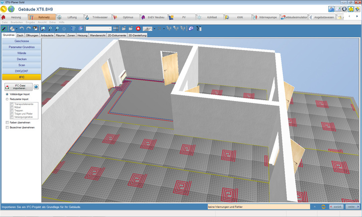 Wer keine tiefgehenden 3D-Kenntnisse hat, sollte sich nicht abschrecken lassen. Eine integrierte CAD-Funktionalität ist enthalten und dadurch für viele Gewerke nutzbar. „HottCAD“ vereint notwendige Grundeingaben (Länge, Breite, Höhe) von Gebäuden, Räumen und Bauteilen, sowie gewerkspezifische Eingaben (Rohrnetzzeichnungen, U-Werte, Wohneinheiten, Zonen etc.). Diese Daten werden anschließend an die jeweiligen Berechnungsanwendungen übergeben. Nachweise, Stücklisten, Planungsunterlagen oder auch Ausschreibungen und Angebote können im ETU-Planer abgeleitet und editiert werden.