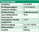 Der Kreuzlinien-Laser DW 087 K ist für die exakte, selbstnivellierende Kreuzlinienprojizierung konzipiert. Er besitzt eine zwei Tasten-Bedienung mit Batterieanzeige und einen leicht positionierbaren Magnetwinkel zur einfachen Befestigung an Metallflächen. Sein robustes, feuchtigkeitsgeschütztes und vollgummiertes Gehäuse ermöglicht auch den Einsatz unter schweren Bedingungen. Sein Batteriebetrieb reicht für über 24 Stunden Laufzeit. Zum Lieferumfang gehören drei LR 6 Batterien, eine Wandhalterung sowie ein Transportkoffer.