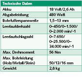 Der 18 Volt Akku-Schlagbohrschrauber DC 925 KB verfügt neben einem Hochleistungsmotor mit Drehzahlelektronik und Motorbremse für schwere Bohr- und Schraubarbeiten auch über ein 3-Gang-Getriebe mit optimal abgestuften Drehzahl- bzw. Drehmomentverhältnissen. Darüber hinaus besitzt er eine elektronische Drehzahlregulierung mit Rechts- und Linkslauf, ein 22-stufiges Drehmomentmodul mit Abschaltmoment sowie ein 13-mm-Schnellspann-Bohrfutter mit automatischer Spindelarretierung und Selbstverriegelung. Zum serienmäßigen Lieferumfang gehören ein 30-Min.-Schnellladegerät, zwei 2,6 Ah NiMH Akkus sowie ein verstellbarer Zusatzhandgriff und ein Transportkoffer.