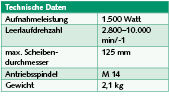 Der 125 mm Einhand-Winkelschleifer D 28136 ist ein leistungsstarker Winkelschleifer mit geringem Gehäusedurchmesser und flachem Getriebegehäuse. Seine mit Epoxyd-Harz gepanzerte Wicklung sowie spezielle Kühlluftführung schützen den Motor vor abrasiven Staubpartikeln. Neben seiner werkzeuglosen Schutzhauben-Schnellverstellung besitzt das Gerät eine optimal positionierte Spindelarretierung, eine Vierfach-Elektronik mit Sanftlauf, Anlaufstrombegrenzung, Überlastschutz und Drehzahlkonstanthaltung sowie einen Sicherheitsschalter gegen unbeabsichtigtes Wideranlaufen nach Spannungsausfall. Zum Lieferumfang gehören eine Schutzhaube und ein Vibrationsdämpfender Zusatzhandgriff.