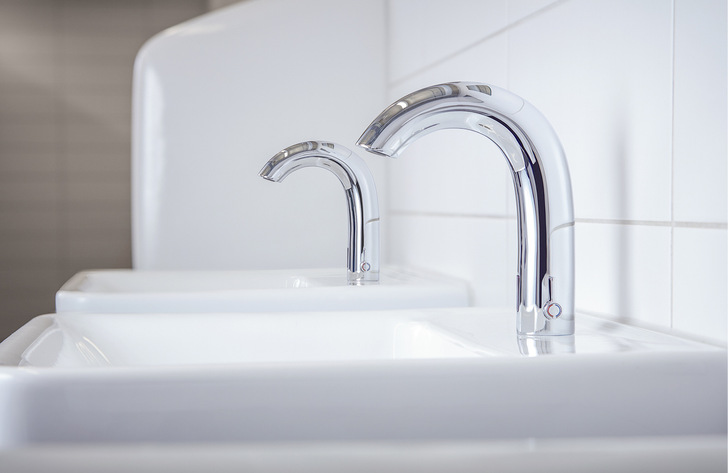 Mit Curvetronic bietet Laufen eine auf Infrarot-Technologie basierende, designorientierte Selbstschlussarmatur für den öffentlichen Bereich an. Sie lässt sich berührungslos bedienen, was für mehr Hygiene und Komfort am Waschplatz sorgt. Das Wasser fließt und stoppt vollautomatisch, wobei sich die Wasserlaufzeit individuell einstellen lässt. Ihr visuelles Highlight ist der geschwungene, bogenförmige Auslauf. Mit einem Körperdurchmesser von nur 47 mm ist die Armatur deutlich schlanker als alle bisher auf dem Markt erhältlichen Modelle mit Infrarot-Technologie. Nebst der klassischen Ausführung in Chrom ist Curvetronic auch mit einer PVD-Beschichtung in Edelstahl erhältlich. Sie gehört zur Smart Bathroom-Lösung von Laufen. Diese vernetzt über die App Smart-Control die Waschtischarmaturen, Duschen- und Urinalsteuerungen öffentlicher Sanitäranlagen. Bei Großen Anlagen, die mehrere Stockwerke und/oder Gebäude integrieren, empfiehlt sich zusätzlich die Installation eines Gateways. Dies ermöglicht wahlweise den kabellosen Datentransfer der installierten Produkte zum Dashboard oder die Einbindung in das GLT-Netzwerk eines Gebäudes. Heißt konkret, dass Installateure und Betreiber die vernetzten Produkte aus der Ferne – am PC oder am Laptop – einstellen und warten. Und zwar ohne, dass spezielle Steuerleitungen verlegt werden müssen, da die Produkte via Bluetooth mit dem Gateway kommunizieren. Das führt laut Anbieter zu mehr Hygiene, schnelleren Reaktionszeiten, verbesserten Serviceleistungen, weniger Wasser- und Energieverbrauch und damit zu einer Kostenersparnis.