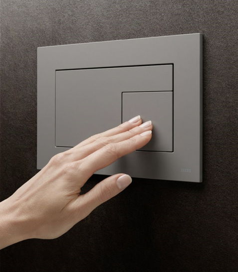 Unter dem Namen Tece-Velvet hat der Hersteller eine Kollektion WC-Betätigungsplatten herausgebracht. Eine einfache, klare Form aus zwei geometrischen Elementen verdeutlicht die Funktion der Zwei-Mengen-Spültechnik. Die Platte besteht aus Fenix NTM, einem Oberflächenwerkstoff, der sich samtig anfühlt (velvet = engl. für Samt). Diese edle Wirkung wird unterstützt durch die Technik dahinter, beide Tasten sind gummigepuffert. Gleichzeitig ist die Oberfläche robust, hygienisch und pflegeleicht. Selbst Fingerabdrücke sind nicht sichtbar. Die Aufbauhöhe beträgt 5 mm vor der Wand. Mithilfe eines speziellen Einbaurahmens ist auch eine flächenbündige Installation möglich. Effektvoll wirkt das, wenn sie in eine farb- und materialidentische Wandverkleidung mit Fenix NTM eingelassen wird. Die Platte ist kompatibel mit dem universellen Tece-Spülkasten und lässt sich damit technisch auf- und abwärtskompatibel auswechseln, was eine einfachere Renovierung und Modernisierung ermöglicht – auch nach Jahren. Velvet misst 220 x 150 mm und ist in sechs aktuellen Farben erhältlich: Bianco Cos (Weiß), Beige Arizona (Greige), Castro Ottawa (Beige-Braun), Grigio Efeso (Steingrau), Grigio Londra (Anthrazit) sowie Nero Ingo (Schwarz). Im halböffentlichen Raum ergänzt die sensorgesteuerte Urinalauslösung Filo-Velvet das Oberflächen-Portfolio.