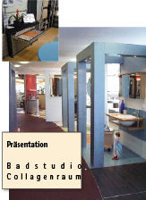Badstudios, Collagenräume und Eventbereiche werden künftig ineinander verschmelzen. Die Information Ihrer Interessenten wird ein besonders starkes Medium der Zukunft. Deshalb sind digitale Präsentationen mit hochwertigen LCD- oder Plasmabildschirmen im Mega-Format oder hochwertige Beamer-Präsentationen künftig nicht mehr wegzudenken. Der Collagenraum als Dreh- und Angelpunkt jeder Bad-Beratung wird das wohl wichtigste Medium. Wer seinen Kunden signalisieren möchte, dass er mehr als „nur“ ein Installateur ist, muss das künftig auch beweisen. Nachfolgend noch einige Faustwerte zu den Investitionskosten für unterschiedliche Bereiche: Badstudio: ca. 1000 bis 1500 Euro je m² Ausstellung; Collagenraum: ab ca. 15000 Euro; Badkino: ab ca. 3000 Euro; Präsentationstechnik: ca. 5000 Euro.