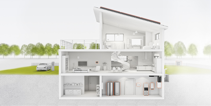 Entscheidend für den Erfolg solcher Lösungen ist, dass die verschiedenen Komponenten miteinander kommunizieren. In Prosumer-Haushalten (Stromproduzenten und „Consumer“ in einem Wort) gehört ein Energiemanager fast schon zur Grundausstattung der Haustechnik. Dieses Gehirn der Stromverteilung kennt den Ertrag der Photovoltaikanlage und weiß, welche Temperatur der Heizungs-Wasserspeicher hat. Er kennt den Füllstand einer etwaigen Hausbatterie und kann im Idealfall anhand von Online-Wetterdaten vorhersehen, wie hoch morgen der Stromertrag vom eigenen Dach und wie groß der Heizwärmebedarf sein wird. Mit diesen Daten koordiniert er die Verbraucher, Speicher und Wärmeerzeuger. Der Wasserspeicher wird bei überschüssigem Sonnenstrom bis zum Maximum beheizt, bei wenig Sonnenertrag bleibt seine Temperatur am unteren Limit. Ähnlich wird auch mit dem Batteriespeicher verfahren. Und sobald ein Elektroauto zum Haushalt gehört, werden auch dessen Ladestrom und Batterie in das Energiemanagement mit einbezogen.