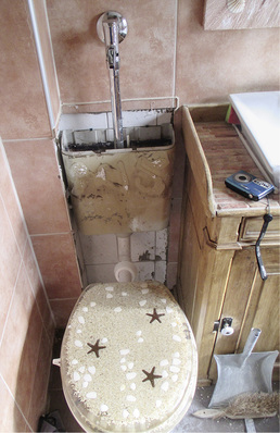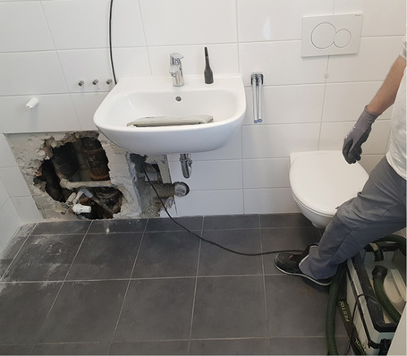 Der Leckorter teilte uns zur Schadensursache mit, dass es hinter dem Druckspüler undicht wäre und das behoben werden müsste.