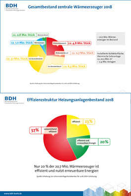 56 % der insgesamt ca. 21 Mio. in Deutschland installierten Heizungen sind technisch veraltet und damit unzureichend effizient. Das ist das zentrale Ergebnis der Erhebungen, die der Bundesverband des Schornsteinfegerhandwerks (ZIV) und der Bundesverband der Deutschen Heizungsindustrie (BDH) jährlich durchführen.