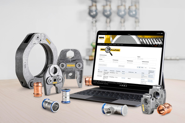 Das neue Tool „PressFinder“ von Rems soll die Suche nach passenden Presszangen für Pressfitting-Systeme vereinfachen und beschleunigen.