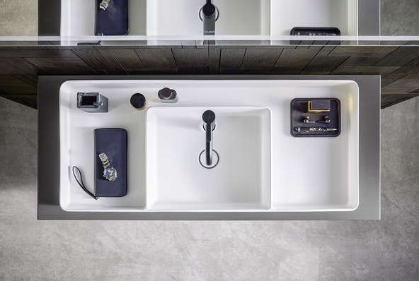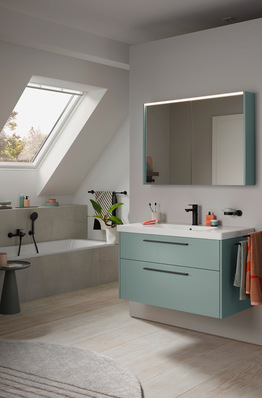 Charakteristisch für das Möbelprogramm Ketho.2 von Duravit sind rechtwinklige Grundformen, die dank bündig angebrachter, 16 mm starker Korpusseiten eine besondere Klarheit gewinnen. Die in die Front integrierten Griffleisten betonen die Horizontale und strukturieren so das Gesamtbild. Dank...