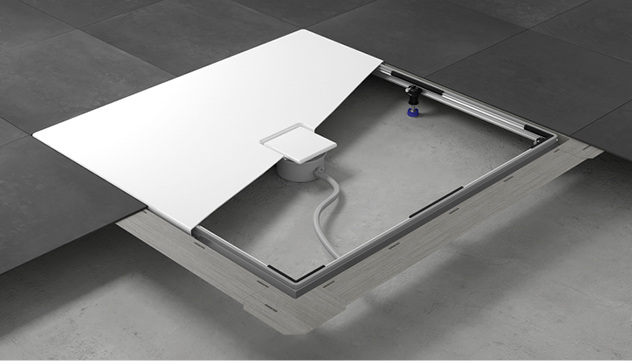Für bodenebene Duschen sind praktikable Lösungen für den Anschluss der Abflussleitung an die Fallleitung erforderlich, denn Leitungen unterhalb der Decke sind häufig nicht erwünscht und bei Brandschutzauflagen muss mindestens eine weitere Rohrdurchdringung abgeschottet werden. Eleganter ist es...