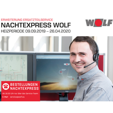 Wolf erweitert während der Heizperiode sein Angebot bei der Lieferung von Ersatzteilen. Gehen Bestellungen in einem bestimmten Zeitraum ein, wird über Nacht geliefert, auch sonntags.