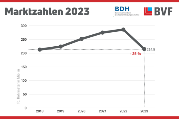 Die Marktzahlen des BVF und des BDH zeigen, dass der Absatz von Flächenheizungen in 2023 um mehr als 20 % zurückgegangen ist.