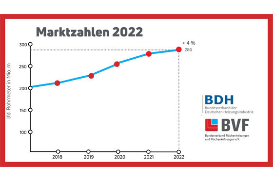 2022 ist der Absatz von energieeffizienten Flächenheizungen und Flächenkühlungen im Vergleich zum Vorjahr um 4 % gestiegen.