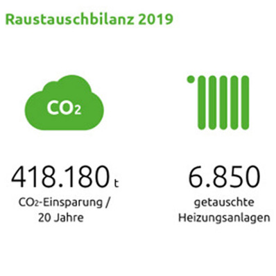 Zwischen März und Oktober 2019 haben im Rahmen der Kampagne „Raustauschwochen“ 6850 Modernisierer alte Heiz-Anlagen gegen neue Gasheizungen ausgetauscht. Insgesamt wurden Investitionen von 62 Mio. Euro ausgelöst.