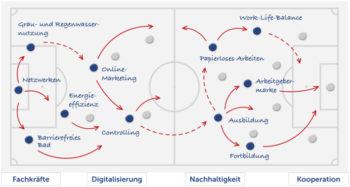 Fachkräftebedarf, digitale Möglichkeiten, neue Arten der Wärmeversorgung – vor diesen und weiteren großen Herausforderungen stehen viele SHK-Unternehmer. Aber: Ist ein Betrieb überhaupt auf all‘ die neuen Themen vorbereitet? Im Regelfall wird eine Taktik benötigt, die alle zukunftsweisenden Punkte berücksichtigt. Denn eines ist klar: mit dem Status Quo und Selbstbild eines „normalen Handwerkers“ wird das schwierig. Die Unternehmerseite im Teamchef gewinnt zunehmend an Bedeutung, wie im Fußball auch!