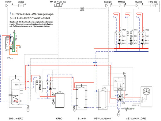 Hybrid heizen hat auch in größeren Immobilien eine Berechtigung, wie das Beispiel einer Nutzfahrzeug-Werkstatt in Schwieberdingen zeigt. Das bivalente System mit Komponenten von Bosch Homecomfort besteht aus Luft/Wasser-Wärmepumpe und Gas-Brennwertkessel. Fußbodenheizung und Frischwasserstation versorgen Gebäudebereiche effizient mit Grundwärme, bei Bedarf wird für die Spitzenleistungen für Warmwasser und Heizung in den Sozialräumen und der Dienstwohnung ein Gas-Brennwertkessel zugeschaltet.