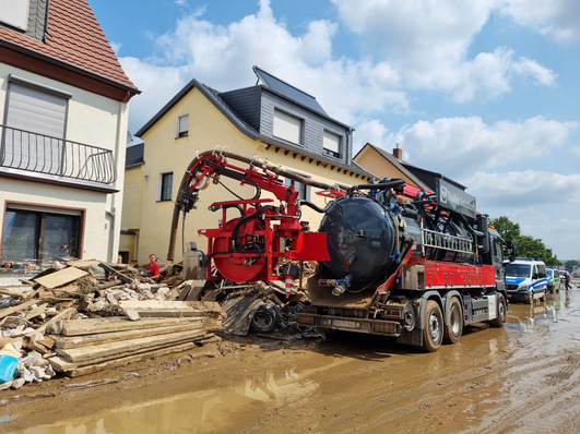 Großaktion in Ahrweiler: Kroll schickte 26 Fahrzeuge in den Einsatz, um etwa 200 Keller, im vom Hochwasser betroffenem Gebiet, leer zu pumpen.