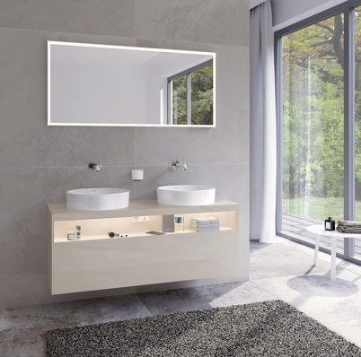 Mit der Möbelkollektion Stageline von Keuco hält wohnliche Atmosphäre Einzug ins Bad. Optisches Highlight der Serie ist ein offenes, illuminiertes Ablagefach, das Dekorationsstücke und Lieblingsprodukte gekonnt in Szene setzt. Die LED-Beleuchtung von warmweißen 3000 K wird extern über die...