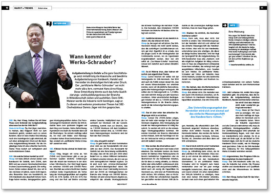 Die gute Geschäftslage setzt die klassische und bewährte Aufgabenteilung von Handwerk, Handel und Hersteller im dreistufigen Vertrieb unter Druck. Der „zertifizierte Werks-Schrauber“ sei nicht mehr allzu fern, vermutet Hans-Arno Kloep.