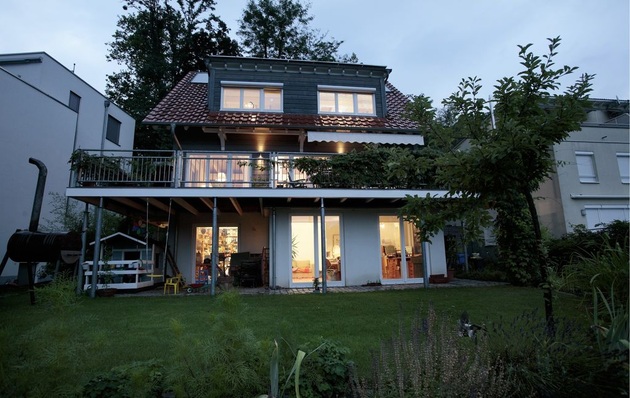 Im Jahr 2005 entstand in Baden-Baden ein Einfamilienhaus, in dem sich ökologische Bauausführung und hocheffizientes Energiesparen problemlos mit Wohnkomfort und ansprechender Optik vereinen. Das 190-m2-Wohnhaus in Hanglage der Familie Meyer-Jacob, in welchem das Ehepaar auch seine Arbeits- und Atelierräume untergebracht hat, verfügt über gute Dämmwerte und ein kombiniertes Heizsystem aus Pelletskessel und Solarthermie.