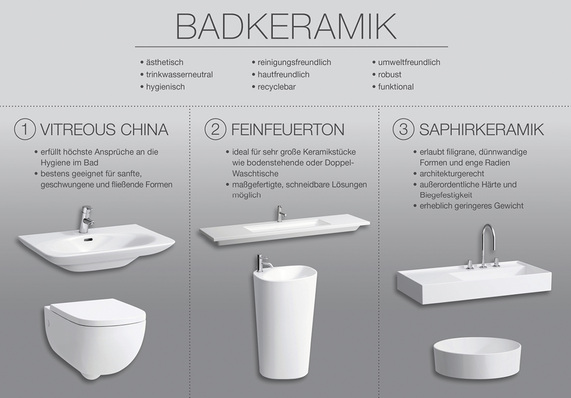 Faszinierender Werkstoff Laufen ist der einzige Hersteller, der derzeit drei Keramiksorten produziert – doch diese Exklusivität reicht nur noch bis zur ISH. Dort werden weitere Hersteller auch extrem dünnwandige Sanitärkeramik anbieten und die Tür für filigranes Waschschüssel- und Waschbeckendesign öffnen. Lesen Sie hier, wann Feinfeuerton, das klassische Vitreous China sowie die neue Saphirkeramik zum Einsatz kommen.