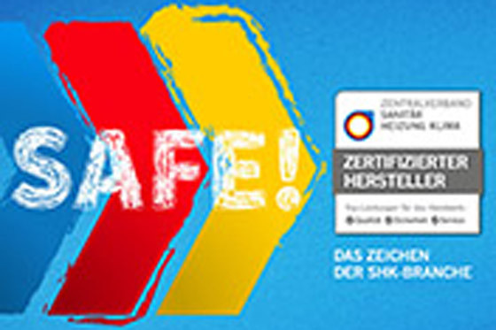 Qualitätszeichen des Handwerks ▪ Wer auf Qualität, Sicherheit und Service bauen will, findet im Qualitätszeichen (QZ) des ZVSHK die passende Orientierung. Für dieses Zeichen hat das SHK-Fachhandwerk zusammen mit Geberit und weiteren zertifizierten Herstellern wichtige Kriterien erarbeitet, die dem Profi den Rücken stärken. Deutlich wird dies im Logo „SAFE!“, das signalisiert: Geberit oder ein anderer QZ-zertifizierter Hersteller verpflichtet sich zu weiterführenden Leistungen, auf die SHK-Mitgliedsbetriebe vertrauen können. Das reicht vom definierten Ersatzteilservice über die Nachkaufgarantie bis zur tatkräftigen Unterstützung, die beispielsweise bei einem Schaden durch Materialfehler von großem Vorteil sein kann.