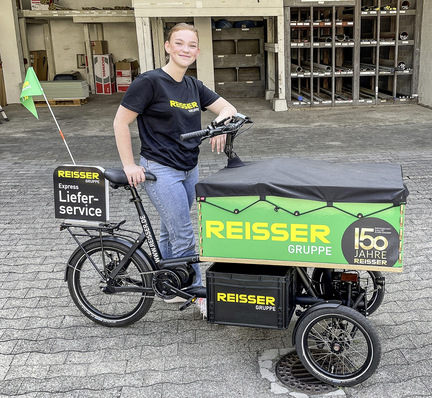 Der SHK-Großhändler Reisser stellt Freiburger Fachhandwerkern für den Weg zum Auftrag und zum Transport ein elektrisches Lastenfahrrad zur Verfügung.