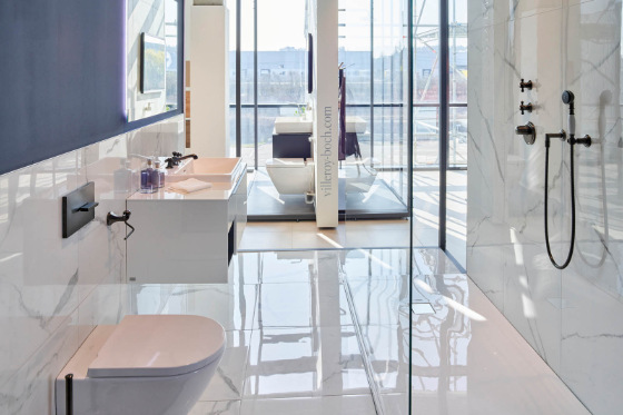 Als Teil der Designbad-Ausstellung der Reisser AG am Stammsitz in Böblingen ist ein Villeroy & Boch Flagship Store entstanden. Auf 200 Quadratmetern gibt es hier Sanitärkeramik, Fliesen und Möbel zu bestaunen.