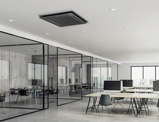 Die Deckenkassetten KWD EC COANDA klimatisieren einen Raum gleichmäßig ohne lästige Zugerscheinungen durch den 360-Grad-Luftauslass. Durch die speziell konzipierte, sichtbare Geräteblende in Schwarz matt erfolgt der Luftauslass mit einem geringen Abstand parallel zur Decke. So entsteht ein...