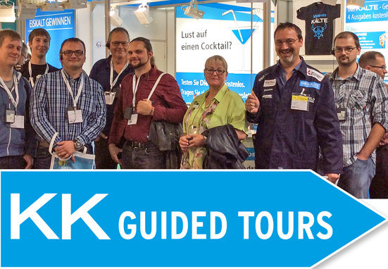 Die Fachzeitschrift DIE KÄLTE + Klimatechnik (KK) bietet mit Unterstützung der NürnbergMesse geführte Rundgänge während der Chillventa an. Es gibt Führungen zu den Themen Kältetechnik, Klima- und Lüftungstechnik, Pumpentechnik und MSR-Technik.