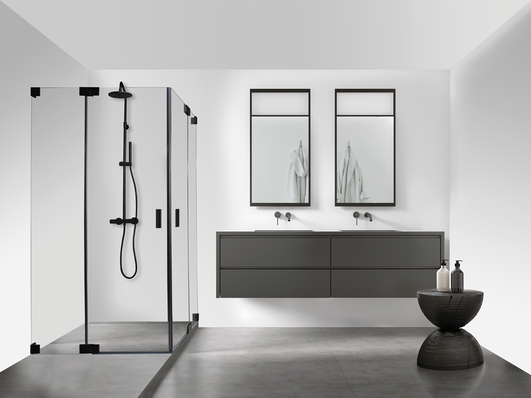 Das Industrial Design hält Einzug ins heimische Bad. Daher reagiert der Glashersteller SPRINZ auf zahlreiche Kundenanfragen und nimmt die Glasdusche Inloop Black Square ins Programm auf. Damit ergänzt der Glas-Spezialist seine Glasduschen-Serie Inloop.