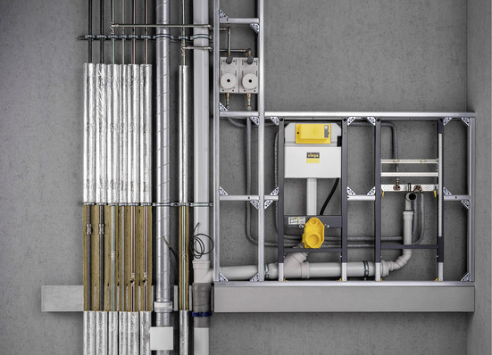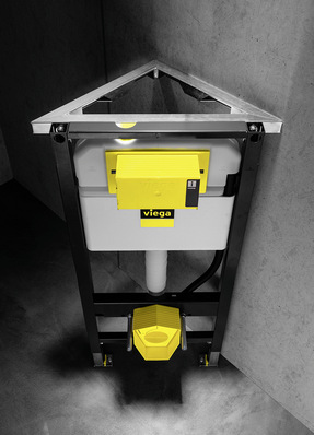 Das Eckelement Prevista Dry ergänzt das Vorwandprogramm von Viega. Durch den robusten Stahlrahmen können WC-Elemente ohne großen Aufwand direkt in Ecken platziert werden. Die Einbauhilfe wird dafür an der oberen Traverse mit dem WC-Vorwandelement verschraubt. Das sorgt für hohe Stabilität, ohne die...