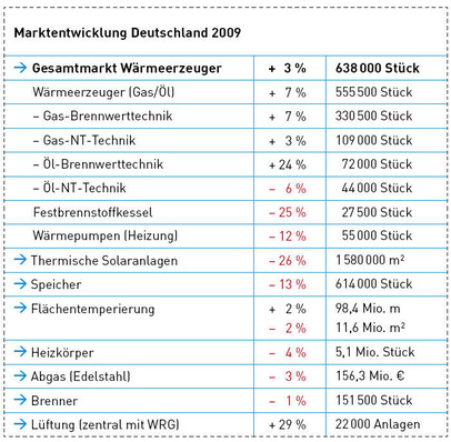 Der Bundesverband Deutschland Haus-, Energie- und Umwelttechnik (BDH) stellte auf der Ende Januar in Berlin durchgeführten Wärmekonferenz aktuelle Marktdaten für 2009 vor. Insgesamt hat sich der deutsche Heizungsmarkt mit plus 3 % leicht positiv entwickelt, bei den einzelnen Heiztechniken gab es...