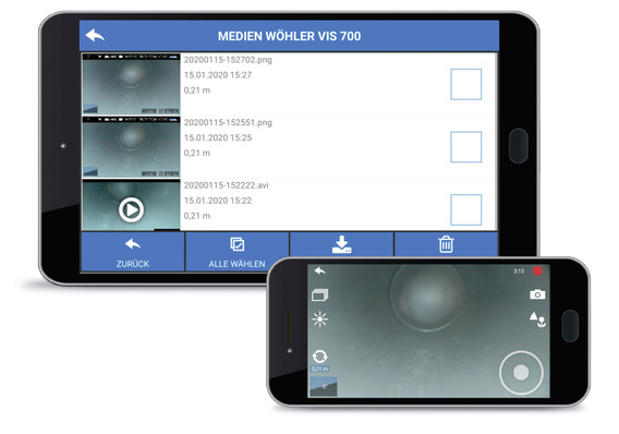 Die neue App Wöhler VIS 700 der Wöhler Technik GmbH ermöglicht es, Bilder und Videos des HD-Videoinspektionssystems Wöhler VIS 700 im großen Kameradisplay und gleichzeitig im Display von Smartphone oder Tablet anzuzeigen.