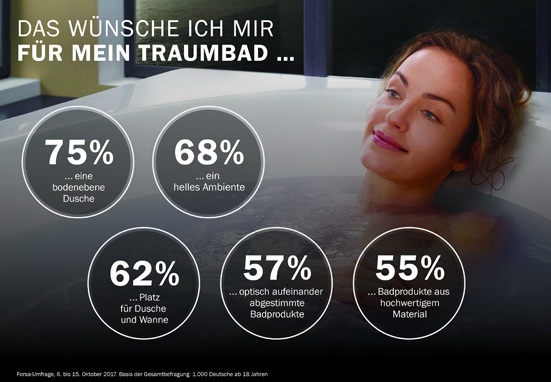 Laut einer Umfrage der Meinungsforscher des forsa-Instituts im Auftrag von Kaldewei bietet das Traumbad aus Sicht der Verbraucher vor allem eine bessere Nutzung des vorhandenen Raums, flexible und individuelle Lösungen, gerade für Kleinbäder, und mehr Komfort. Drei Viertel der Befragten hätten...