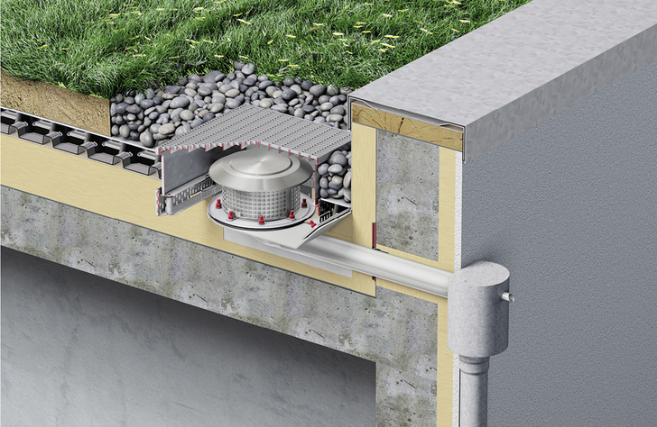 Zur Verfügung stehen zwei Varianten: mit 45° Aufkantung für Bitumendichtungsbahnen und mit 90° Aufkantung für Kunststoffdichtungsbahnen. Für eine GEG‑konforme Montage ist der Attikaablauf mit einem passenden Isolierkörper aus Polyurethan ausgestattet. In Verbindung mit dem Rohrleitungssystem GM‑X erreichen die neuen Attikaabläufe Abflusswerte von bis zu 6 l/s bei Freispiegelentwässerung und bis zu 18 l/s bei Unterdruckentwässerung (DN 70).