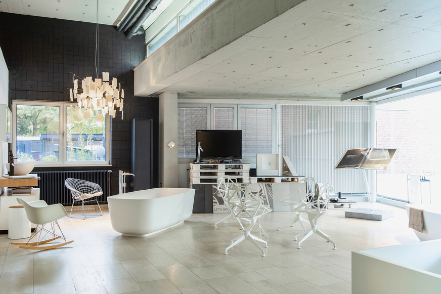 Das Familienunternehmen hat in Ludwigshafen eine lange Tradition und es hat mit dem Showroom die klassische Werkstatt des Handwerks neu interpretiert. Das loftartige Ausstellungsgebäude dient heute als inspirierende Plattform für hochwertige Badarchitektur und als eine Einladung an Kunden, sich auf ein besonderes Beratungskonzept einzulassen, das auf einigen Geschichten und auf viel Wissen basiert. Der Protagonist und Nutznießer dieses Wissenstransfers ist der Kunde und seine individuelle Badlösung.