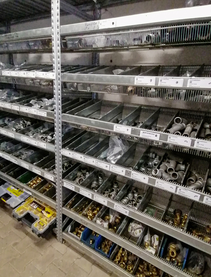 Hier bieten insbesondere die C-Artikel-Lieferanten (wie Würth, Berner, Förch, Sprügel) aber auch inzwischen der klassische SHK-Großhandel entsprechende Systeme an, die ganz klar zu einer positiven Lieferantenbindung führen für den Handel, die aber auch die Arbeit der Materialwirtschaft beim Handwerk deutlich verbessern helfen. So gibt es zum Beispiel eine entsprechend ordentliche Lösung mit Magnetkarten, welche dann direkt zum Nachbestellen verwendet werden können. Empfehlenswert ist zudem eine klare Trennung der Regalfächer in Standardlager und Reservelager, sodass für jeden Mitarbeiter klar ist, dass beim Leeren des Standardlagers die Nachbestellung ausgelöst werden muss.