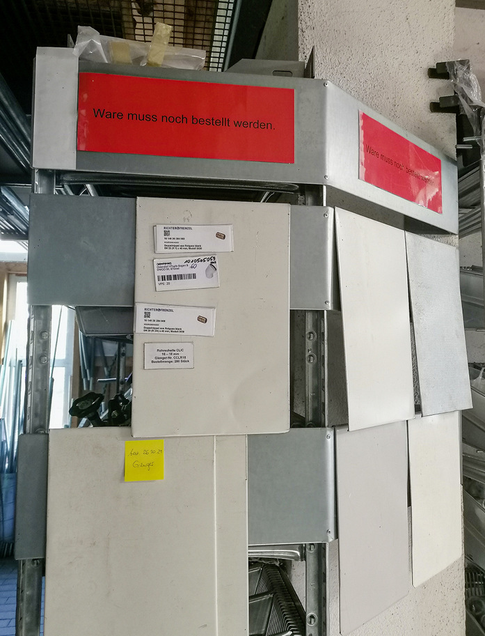 Fehlteile auf der Baustelle sind ein zentrales Störelement für die Produktivität. Leider hat sich dieser Bereich vielfach nicht wirklich verbessert über die Jahre hinweg. Klar ist, dass man vielfach auf den Großhandel setzt bei einer minimalen eigenen Verfügbarkeit. Gerade in den boomenden Ballungsräumen ist Lagerfläche sehr teuer und Betriebe versuchen, darauf so weit es geht zu verzichten. Dementsprechend gab es auch dieses Jahr bei der Bestandsaufnahme wieder eine Vielzahl von Bildern von vollkommen zugestellten Lagerbereichen, was im Kleinstbetrieb mit der Kenntnis, wo was hingestellt wurde, noch funktioniert, aber natürlich ein erhebliches Problem im Mittelstand darstellt.