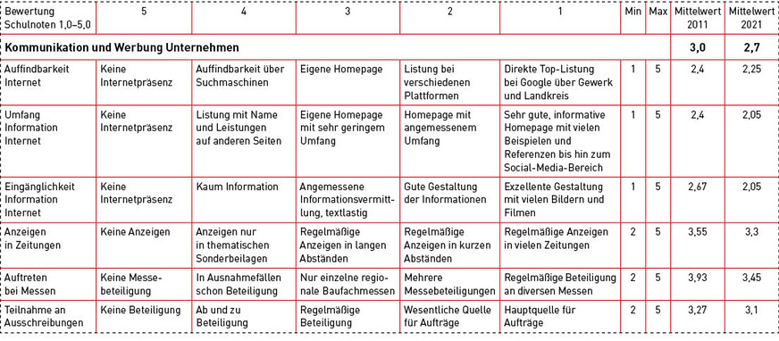 Das im Rahmen der Betriebsanalysen beobachtete traditionelle klassische Meisterhandwerk mit seinen steigenden Mitarbeiterkosten muss heute adäquat beim Endkunden auftreten und seine Tätigkeit auch positiv verkaufen. Dies ist wichtig, um sich dem Preiswettbewerb zu entziehen und auch rein von der Mund-zu-Mund-Propaganda leben zu können. Und: Gerade im privat orientierten Reparatur- und Renovierungsbereich sind die Ansprüche hoch, aber das Handwerk entzieht sich auch Ausschreibungen und Preisdruck erfolgreich. An dieser Stelle vermerkt die Erhebung eine deutlich positive Entwicklung und erreicht Spitzenergebnisse.