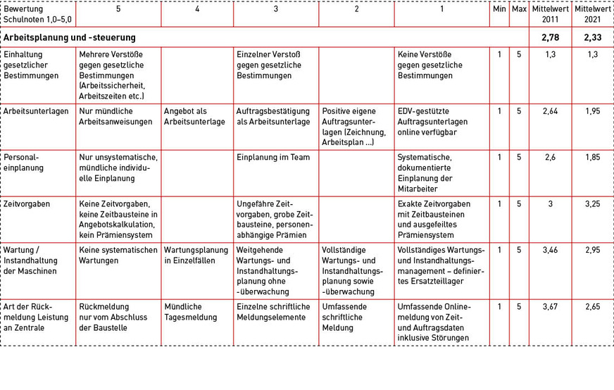 Die Planung und die Steuerung der Aufträge werden immer digitalisierter, was sich deutlich bei den Arbeitsunterlagen zeigt, aber auch der Personaleinplanung und der immer besseren Rückmeldung, heute in vielen Fällen digital über eine Smartphone-App. Allerdings vermeiden Unternehmer heute klare, transparente Zeitvorgaben an die Mitarbeiter und eine zugehörige leistungsorientierte Vergütung auf Zeitbausteinen, weil man nicht über ein zu striktes Management Mitarbeiter verlieren will.